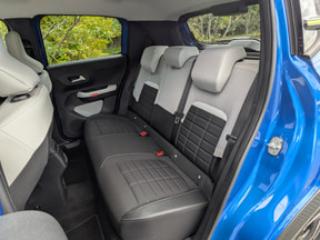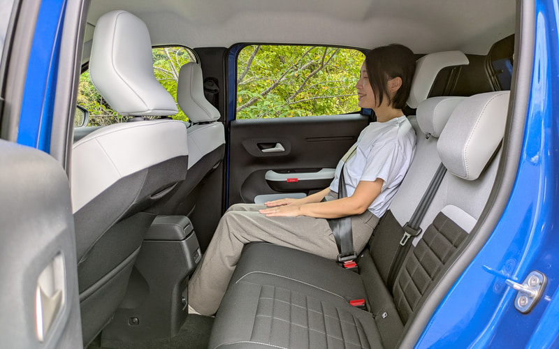 後席にも乗ってみたところ、前席よりは少しヒョコヒョコ跳ねるような感覚はあった。しかし、シートは後席だからといってコストカットされることはなく、前席と同じようにしっかりと体を支えてくれる設えのいいシートが備えられているところは好印象。ただ、背もたれはやや立ち気味で、リクライニング機構がないので、後席に長く座って遠出する機会がある人にとっては、やや気になる点かもしれない。