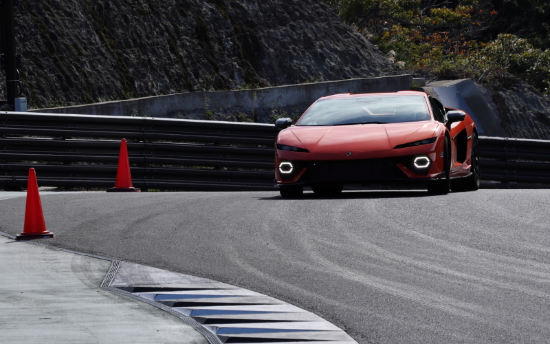 ランボルギーニの最新ベビーランボこと「テメラリオ」。筆者が国内外で何度も試乗を繰り返してきた大好きな「ウラカン」の後継モデルだ。今回の試乗会のステージは、千葉県南房総市にある会員制プライベートサーキットの「THE MAGARIGAWA CLUB」。