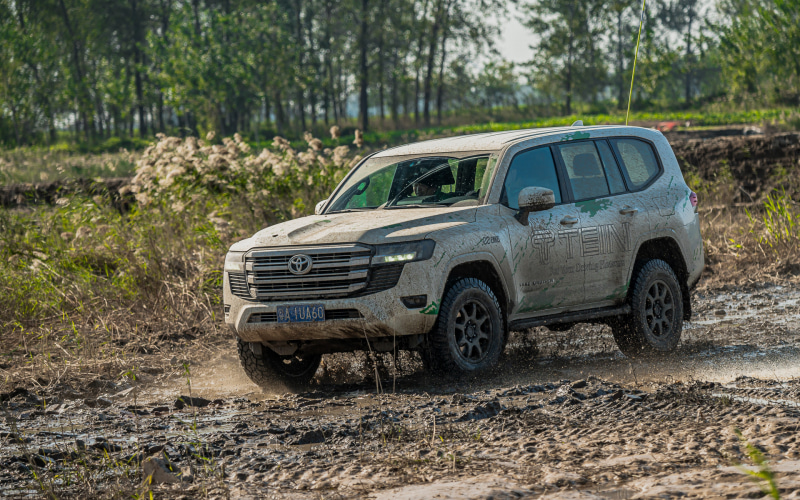 LC300よりひとまわり小さいLC250。中国ではプラドとネーミングされており、中国生産のオリジナルモデルとなる。一気汽車から販売される。中国でもクロスカントリー車の人気はジワジワと上がっている背景もあり、サスペンションも使用環境に応じてチューニングされている。試乗コースでは上下のピッチングが残るために少し上げたいところだが、走り方に応じて減衰力調整ができるのもマニアックな楽しみ方の1つだ。オンロードでのチューニングは乗り心地も含めてちょうどよさそうだった。4×4車はタフさが命。テインのショックアブソーバーはラリーでも鍛えられているので安心感も高い。