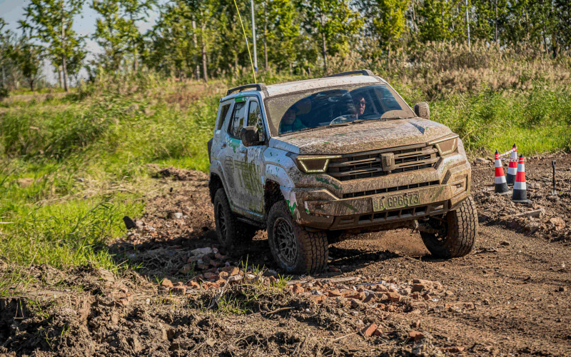 BAW(北京汽車製造)BJ212は人民解放軍のために開発されたのがオリジナル。シンプルで頑丈な4輪駆動の軍用車が元祖だ。民生用も販売され2024年にフルモデルチェンジされひとまわり大きくなった。無骨なデザインだがそれも人気だ。こちらは悪路でESC(横滑り防止装置)が早期介入するなどリファインする必要もあるが、シンプルな構造だけにハンドリングも明快。ダイレクトな運転感覚は好ましく、「4×4 DAMPER GRAVEL 2」で車体が過度に暴れないように設定されている。フルバンプしたときも穏やかに接地するのは伸ばされたストロークによる。ハンドリングは大味だが方向性は定めやすく、減衰力調整で扱いやすくなりそうだ。