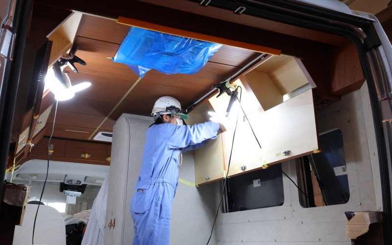 キャンピングカーを作る熊谷工場はミキサー車などを生産する主力工場で、ユーザーの要望に応じてカスタマイズする技術が蓄積されている。そこで培った板金技術やボディ剛性を確保する技術をいかんなくキャンピングカーにも発揮されている。キモであるキャビンにブレスを配置することなく、ボディ剛性を確保できているのもうなずける。
