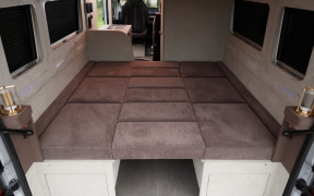 日本で販売されているのは2種類のホイールベース(3450mmと4035mm)があり、今回の試乗車はロングホイールベースで全長は5995mmある。本来はがらんどうのラゲッジルームはその形跡もなく豪華なキャビンに変貌している。