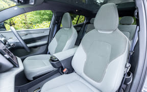 しかし、いざアクセルを踏み込むと、そのしとやかさが吹き飛ぶほどの、パンチの効いた加速が得られる。ちなみに0-100km/h加速は3.6秒とボルボ史上最速、ガソリンエンジン車のプレミアムスポーツカー並みに強烈。BEVで言うとヒョンデの「IONIQ5 N」の3.4秒に次ぐ俊足ぶりだ。
