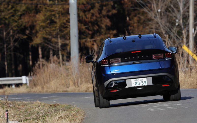 SUVスタイルへと移行した3代目「リーフ」をいよいよ公道で試す。テストコースでの印象はわるくはなかったが、乗り心地がハードだった「アリア」をベースとしたと聞くと「ホントに大丈夫?」と気になっている同業者は多数。