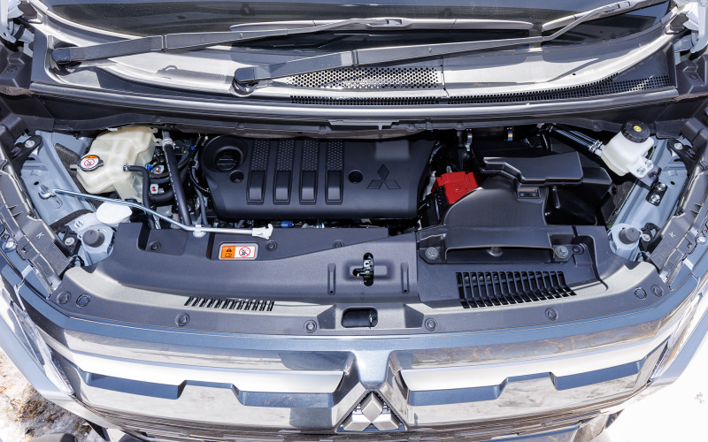 2.2リッターの直噴ディーゼルターボは380Nmのトルクがあり、8速ATとの組み合わせで高速でのクルージングは快適そのもの。エンジン回転も低く抑えられ、しかも低速トルクがタップリしているので巡航してもいつでも加速に移れる余裕が感じられる。この組み合わせはデリカD:5ならではの強みで長距離移動も疲れ知らずだ。エンジン振動もよく抑えられている。