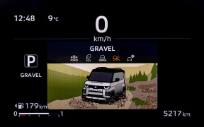 4WDのモードセレクターはデリカD:5同様のダイヤル式になっている。選べるドライブモードはPOWER、ECO、NORMAL、GRAVEL、SNOWの5つだ。駆動力配分を変化させて多様な路面で適合できる。