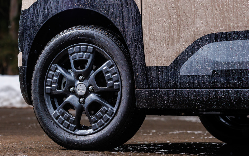 デリカD:5とデリカミニで向かったのは雪を求めて志賀高原だ。装着タイヤは氷上性能に優れたブリヂストンのBLIZZAK。デリカD:5は最新のWZ-1(225/55R18)を履き、雪上性能を上げた最新型だ。一方のデリカミニは氷上性能に優れたVRX3(165/60R15)を装着する。いずれも新しいデザインのホイールによく似合っている。