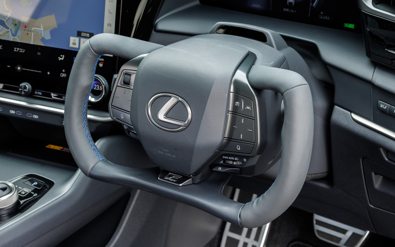 特にRZ550e“F SPORT”はステアバイワイヤを装備している。初めてのシステムだけに長い時間をかけてテストされていたが、2025年秋に発売にいたった。ステアリングロッドを切り離したことで、ステアリング舵角と実際のホイールの切れ角を、速度などのパラメーターを組み合わせることで自在に変えられる。低速では小さな舵角で大きなホイールの切れ角、高速では少しの舵角でわずかなホイールの切れ角を実現している。