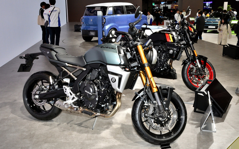 2025年7月に発表し、日本での市販予定車となる新型ネオレトロモデル。「GSX-8S」をベースに、過去のスズキのDNAを現代風にアレンジしたレトロな外観と最新の電子制御を組み合わせ、走りに安心感と楽しさを加えた。また、燃料タンクを14Lから16.5Lに拡大し、航続距離を約60km延ばしている。
