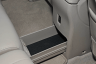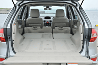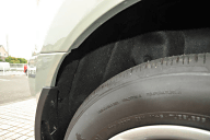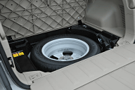 | スペアタイヤは同サイズのアルミホイール付き。ラゲッジルームからアクセスする | フロントシート背面にはトレイを装備する |