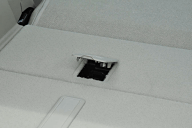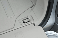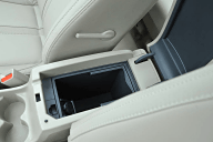 | リアのアームレストは収納することもトランクスルーにすることも可能。小物入れとドリンクホルダー機能も装備する | |