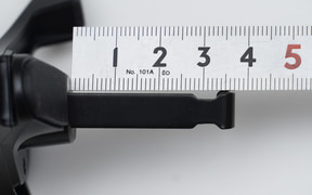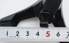 吹き出し口のルーバーの間隔が短ければフック状の金具を差し込むことができず、ルーバーの場所が浅くても深くても固定できない。金具の幅は実測値で8mmで、周囲の形状にもよるが、長さは11mmから36mmまでだ。