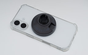 マグネットを内蔵するアップル純正のMagSafe対応ケースを使用すれば問題はないのだが、今回は、コーナーにエアバンパーのあるシンプルな市販ケースに入れてみたところ、吸着力が弱まってしまった。ケースの厚みを測定すると1.2mm前後だったが、吸着力の弱まりから凸凹道での利用は無理だ。