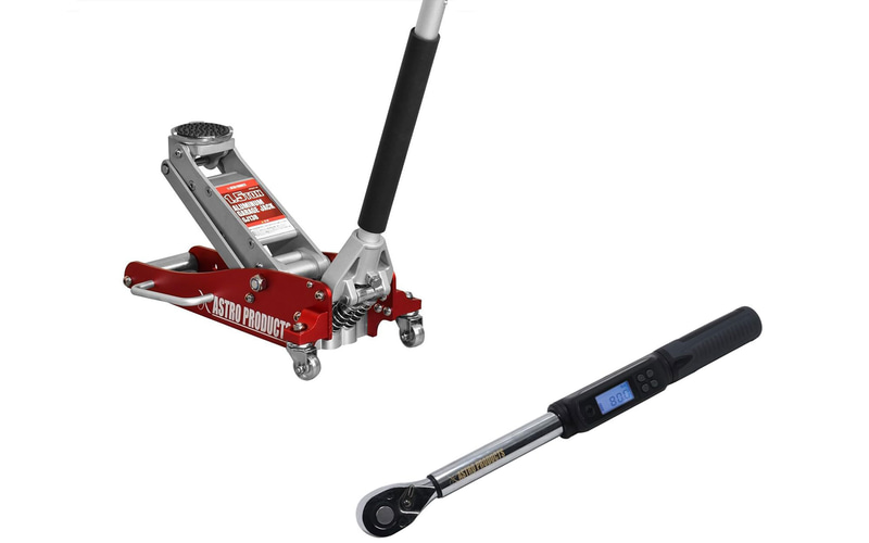 まずはジャッキ。油圧を使ったフロアジャッキは車載工具のパンタジャッキよりも簡単かつ安全にクルマを持ち上げられる。できれば良質なものを使いたいのと、最近のクルマはジャッキを入れにくいものが多いため、選ぶ際は最低高さも確認したい。