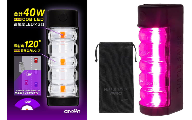 今回セール中のエーモン「パープルセーバー」は、通常タイプとProの2種類があり、雪国ならより明るく遠くまで停止中を知らせる発光出力の高い「パープルセーバーPro」をぜひ検討していただきたい。