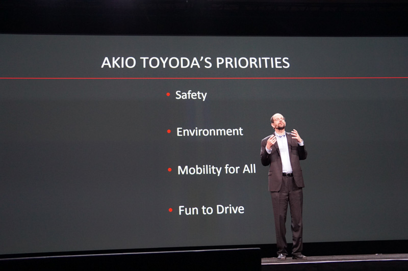 プラット氏はその理想を、「豊田章男社長のビジョンとは、安全(Safety)、環境(Environment)、誰もが使える移動手段(Mobility for All)、楽しい運転(Fun to Drive)の4つだ」と紹介し、2016年時点においても安全がトヨタのソフトウェア開発における最上の価値であることを基調講演で訴えた。もちろん、自動運転について語りながらFun to Driveも入っていることがトヨタらしい部分ではあるのだが、この理想は豊田章男会長自身から現在も語られており、トヨタの開発の方向性の原点であることは間違いない。