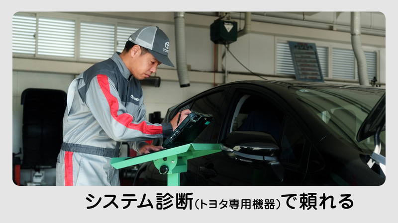 そこで必要になるのが、ハイブリッドシステムの状態をチェックするための専用診断機である。トヨタでは自社のハイブリッドカーのシステムを診断するために「トヨタ専用診断機」という電子検査機器を用意している。これをクルマにつなぐことで、複雑で高度なハイブリッドシステムを詳細にチェックすることができる。