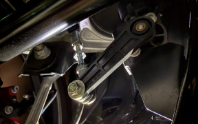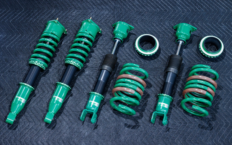 サスペンションメーカーのテインが手がけている「EDFC5(Electronic Damping Force Controller)」を中心にお伝えしている短期集中連載も、いよいよ今回で最終回となる。最後にEDFC5と組み合わせる足まわりは、サーキットを見据えた「MONO RACING」だ。ダンパーは単筒式となりスプリングレートはフロント18kgf/mmか20kgf/mm、リアも18kgf/mmか20kgf/mmをそれぞれ選択することが可能になっている。今回は前後共に20kgf/mmのスプリングをチョイス。前回同様、車高は純正比マイナス30mmに前後ともセットしている。