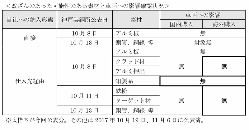 トヨタ、神戸製鋼所のデータ改ざんに関するトヨタ車とレクサス車の第2報
