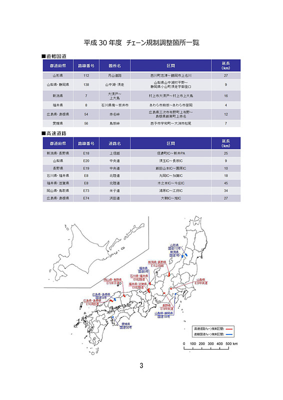 • 国交省、大雪時のチェーン規制を検討する全国13区間公開