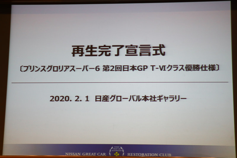 日産名車再生クラブキックオフ式。2019年の再生対象車は「1964年式プリンス グロリア スーパー6 第2回日本GP T-VIレース仕様車」