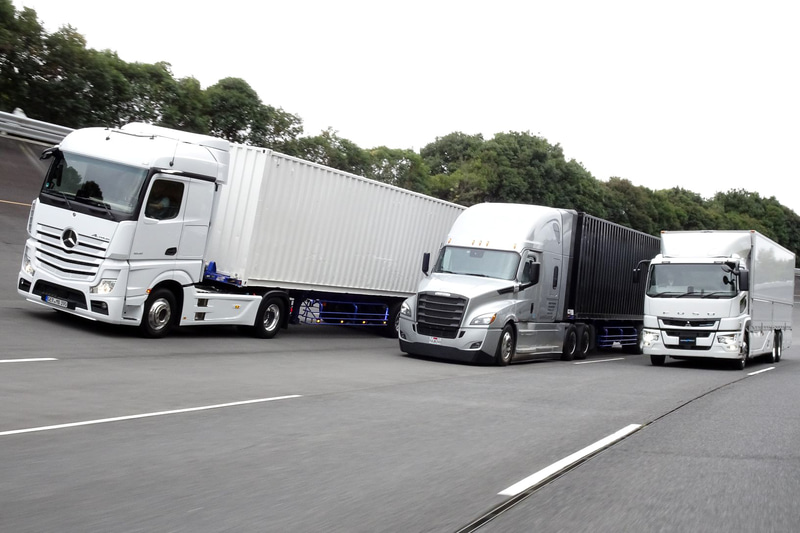 三菱ふそう、高速周回路でトレーラーのクルーズコントロールを体感する勉強会