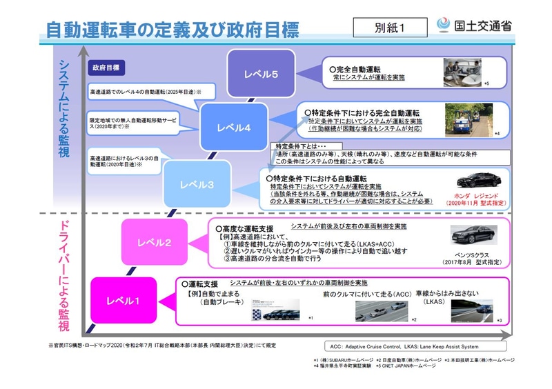 国交省、自動運転車両の呼称を策定 レベル3は「条件付自動運転車(限定領域)」に