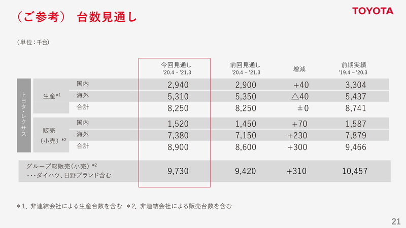 • トヨタ、2021年3月期 第2四半期決算を発表。営業利益5199億円、純利益6293億円で黒字確保