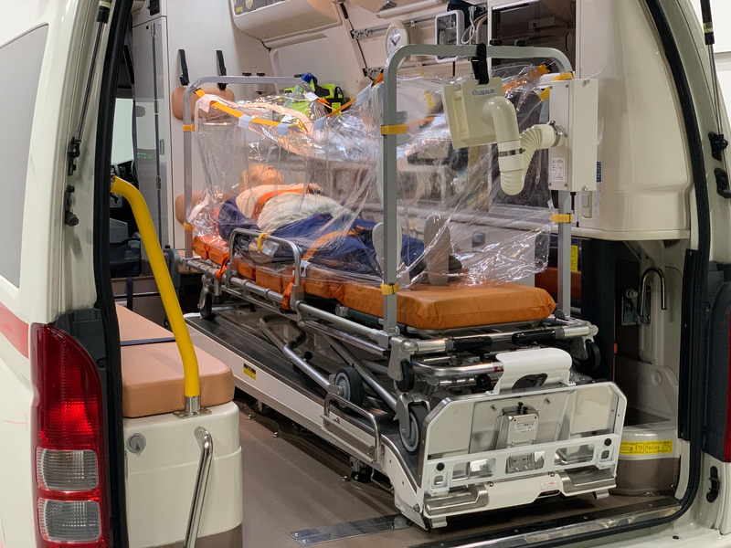 • 救急搬送時のウイルス感染防止機材「陰圧搬送用簡易カプセル」。トヨタカスタマイジング&ディベロップメントが開発中