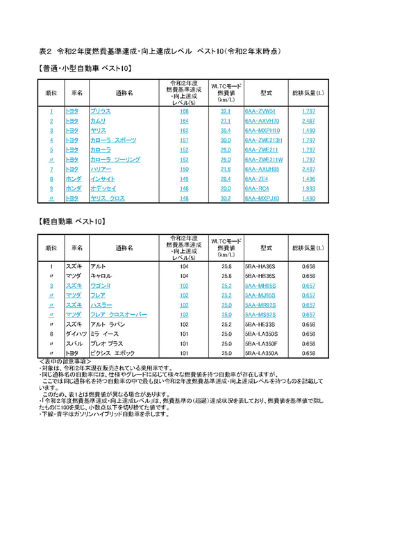 国交省が「燃費のよい乗用車ベスト10」発表。全体のトップは40.8km/Lのトヨタ「プリウス」