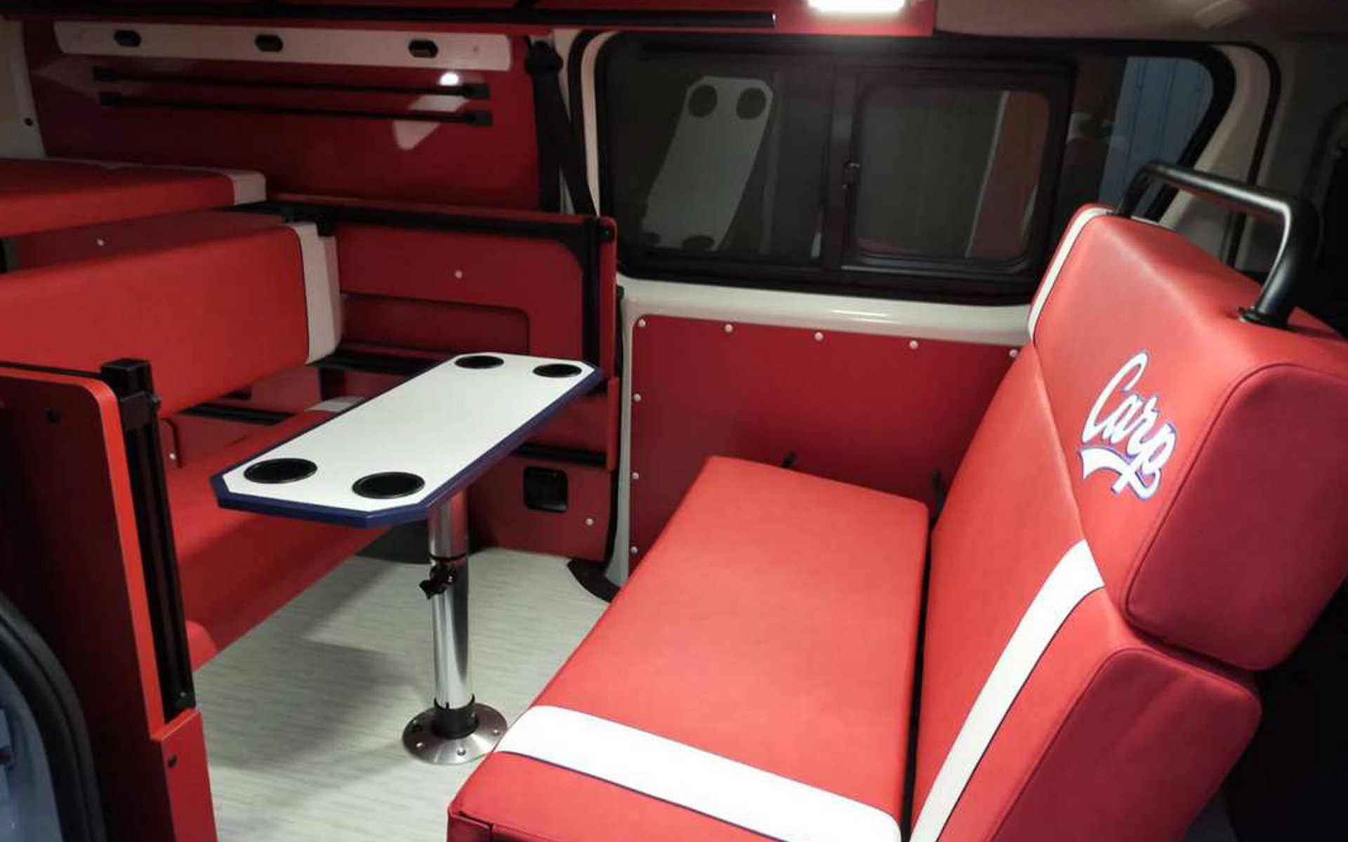 レクビィ、広島東洋カープ承認キャンピングカー「ホビクル・カープ仕様車」 内装色に赤を採用