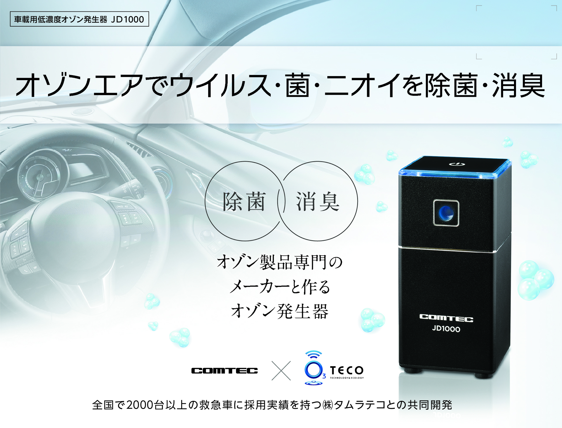 コムテック、車内の消臭・除菌ができる車載用低濃度オゾン発生器「JD1000」