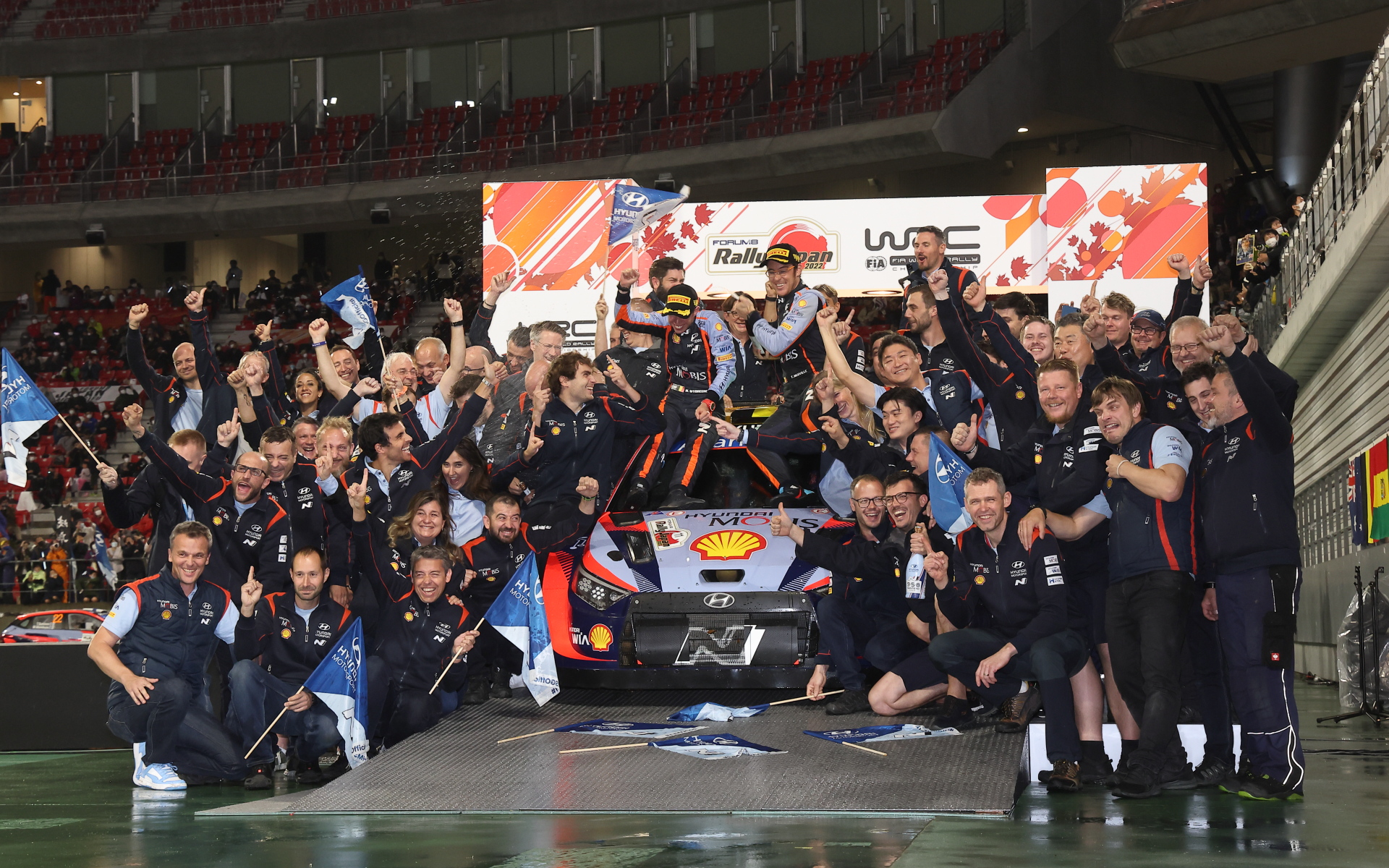 WRCラリージャパン、勝田貴元選手が母国開催で表彰台を獲得 豊田章男社長が祝福に駆けつける