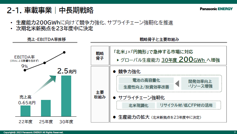 • パナソニックグループ戦略説明会 車載電池は2030年度までに200GWhの生産能力を目指すなど、「本格的成長フェーズへ移行する」と楠見雄規グループCEO
