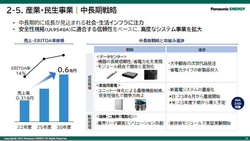 パナソニックグループ戦略説明会 車載電池は2030年度までに200GWhの生産能力を目指すなど、「本格的成長フェーズへ移行する」と楠見雄規グループCEO