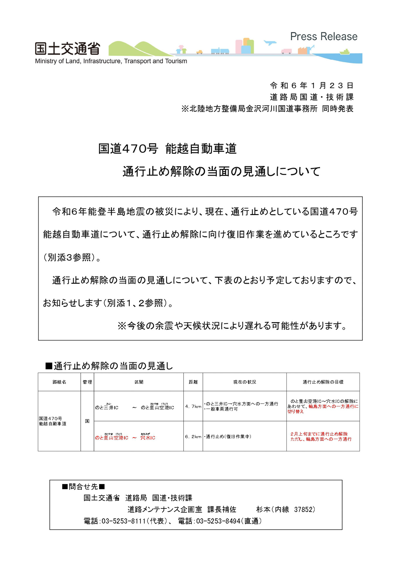 国交省、国道470号能越自動車道 通行止め解除の当面の見通し発表(2/4)
