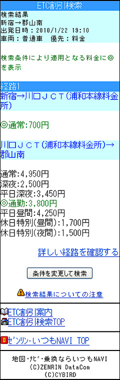 【2009年12月21日】ゼンリンデータコム、iモード用「いつもNAVI」にETC割引検索機能